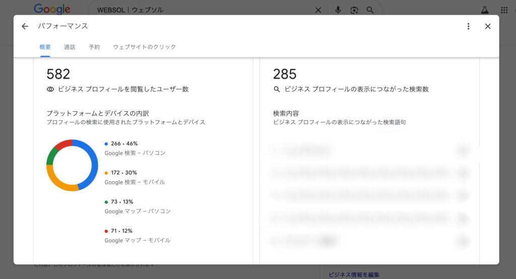 閲覧数や検索で見つけられた回数、行動(電話・経路・Webクリック等)を月次でまとめ、現状を見える化します。数字の報告だけで終わらせず、写真・説明文・投稿・口コミなどの改善ポイントを提案。次月の目標に向けた打ち手を明確にします。